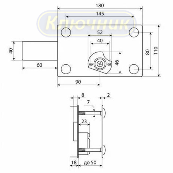 Замок накладной с крестовым цилиндром. Часто используется как замок для гаража. В комплекте три крестовых ключа.