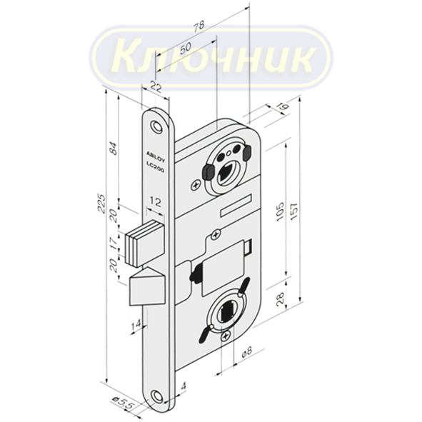 Замок врезной Abloy LС 200 под цилиндр, правый
